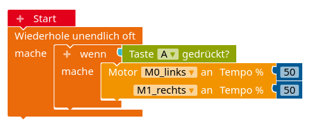 Block zum Ansteuern der Motoren, wenn Knopf A gedrückt wurde.